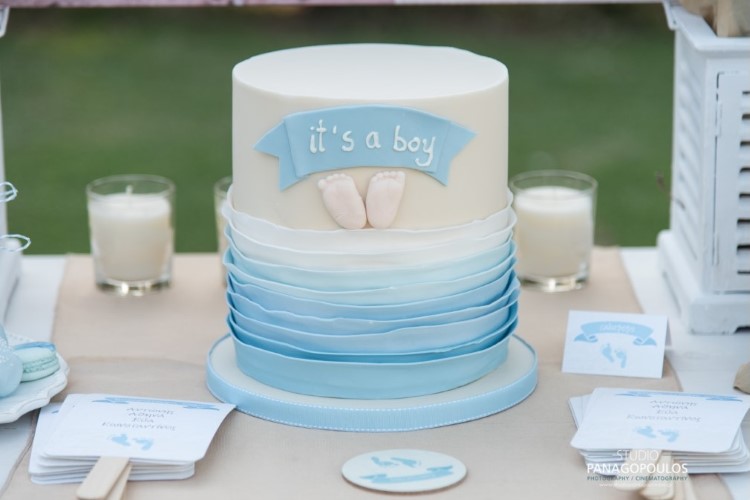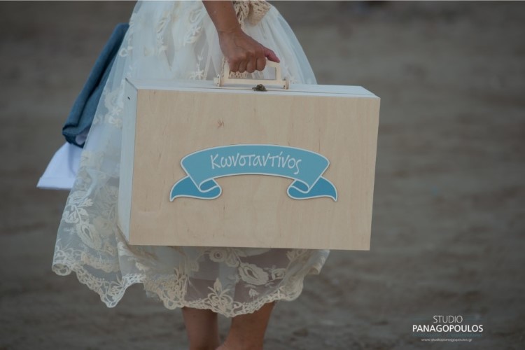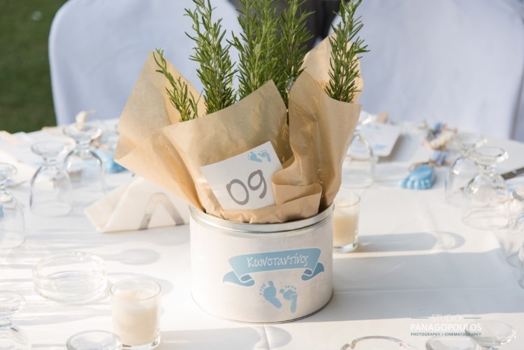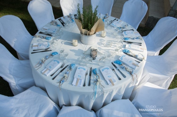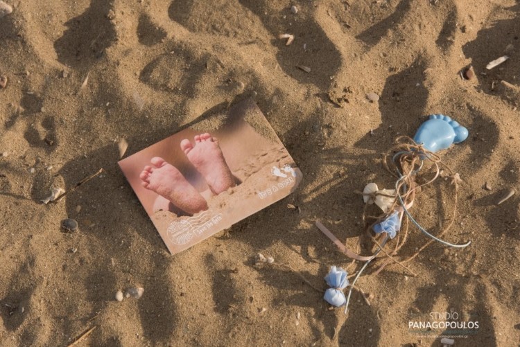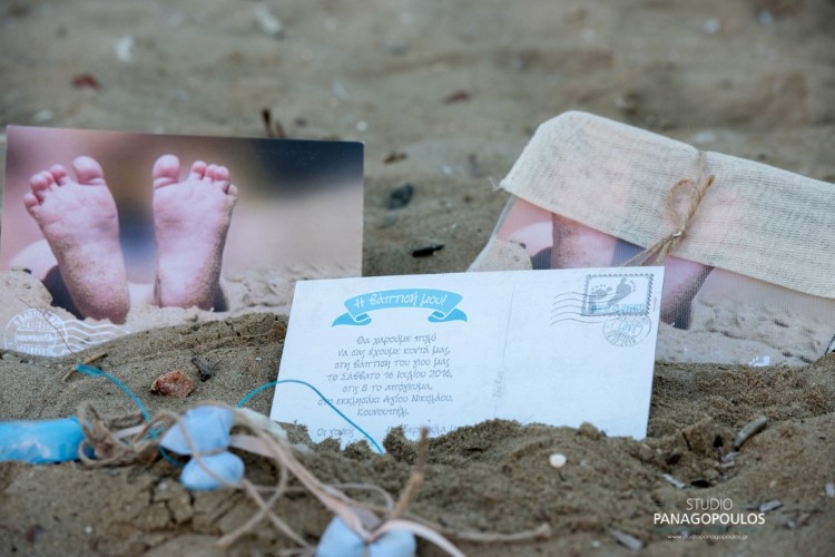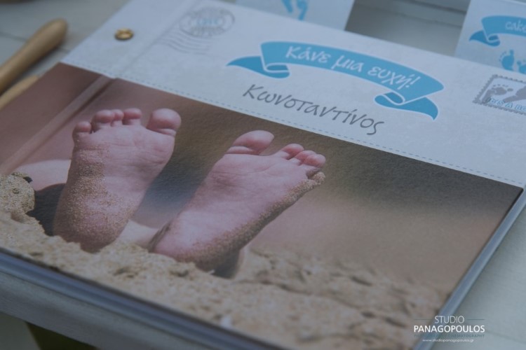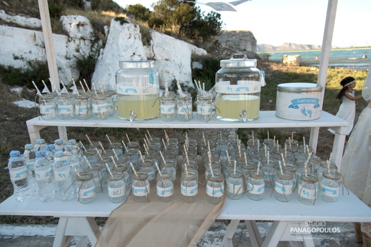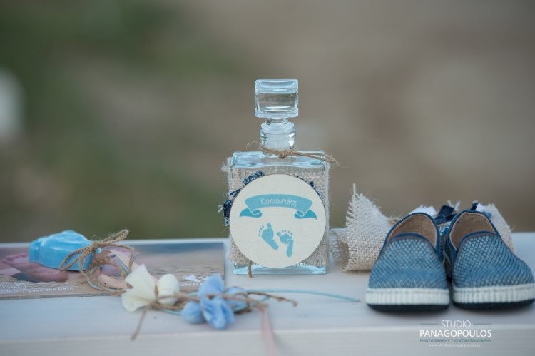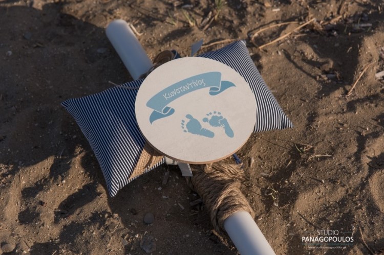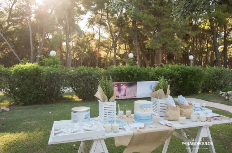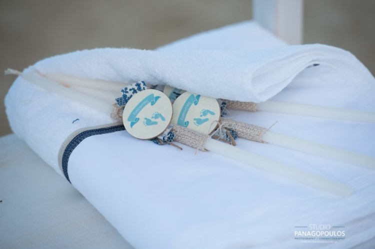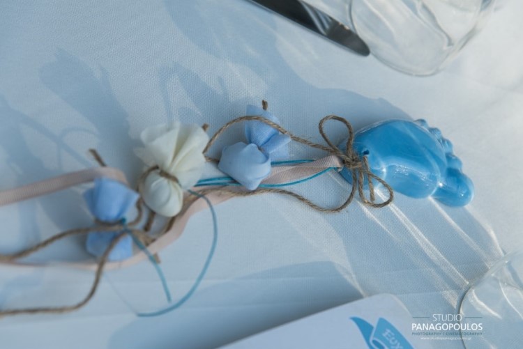Ανέλαβα την οργάνωση & την διακόσμηση επιλέγοντας ως θέμα τα πατουσάκια του μικρού με κυρίαρχα χρώματα το μπέζ της αμμου & το σιέλ.